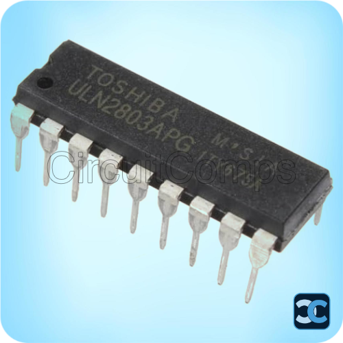 The ULN2803APG is a high-voltage, high-current 8-channel Darlington transistor array from Toshiba, designed for driving inductive and high-load devices directly from logic-level signals. It integrates eight NPN Darlington pairs in a single DIP-18 through-hole package, making it an efficient and space-saving solution for multi-channel load driving applications.