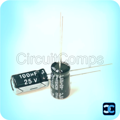 - 100uF 25V 105°C Electrolytic Capacitor 6x11mm HYNCDZ 100uF 25V 105°C Electrolytic Capacitor 6x11mm HYNCDZ