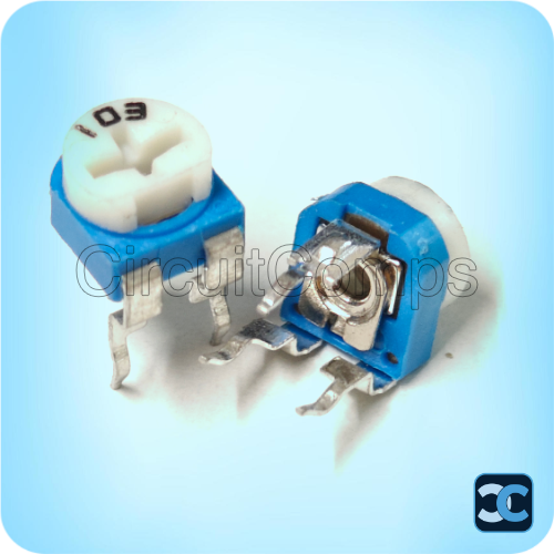 The 10K ohm potentiometer (103) is a 3-pin variable resistor designed for precise voltage and signal adjustment in electronic circuits. Featuring a compact blue and white body, it is suitable for PCB mounting in audio equipment, control circuits, and embedded applications.