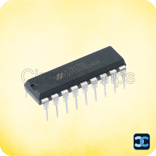 The Holtek HT9170B is a CMOS Dual-Tone Multi-Frequency (DTMF) receiver and decoder IC designed to reliably decode standard telephone tone pairs into a 4-bit binary output. Packaged in a durable 18-pin DIP (through-hole) format, it is ideal for telecom systems, tone-based control modules, remote access devices, home automation, and microcontroller-controlled signaling interfaces.